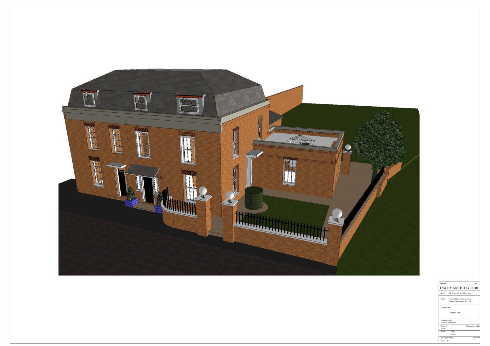 NDA obtained Conservation Area Consent here for a discrete single storey red brickĀ side extension to a picturesque Georgian cottage sited very prominently on Western Green near Hampton Court. There was naturally a great deal of local interest in the project and it required a high standard of drawn presentation work and 3D imagery to clarify the work for all concerned.