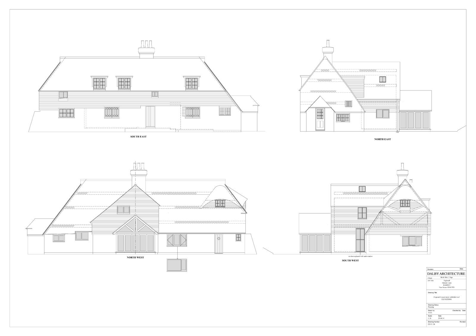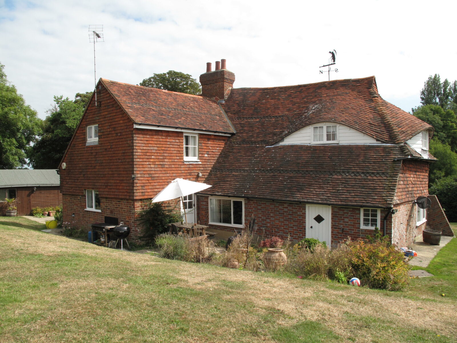 A Grade II Listed late medieval Timber Framed house with evidence of a rear aisle and sooted rafters, original build of 1400 with later additions and it was still thatched in the 1960s. Dr Annabelle Hughes inspected and reported on this building in 1999. Our proposal was working within the later rear service wing and adding a direct glazed extension with some internal alterations to provide a new kitchen & family dining area with principal bathroom above with views across the farmland rising to the rear of the property.