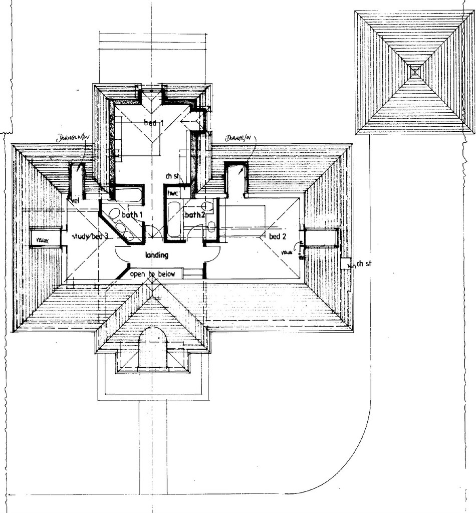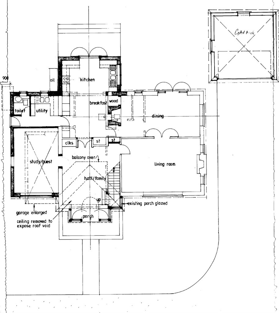 A substandard bungalow for which we negotiated all statutory consents and provided construction & joinery details for conversion to two stories including two storey extensions to two sides. The clients completed the work on a self build basis with our assistance. Dates: 2000-1.