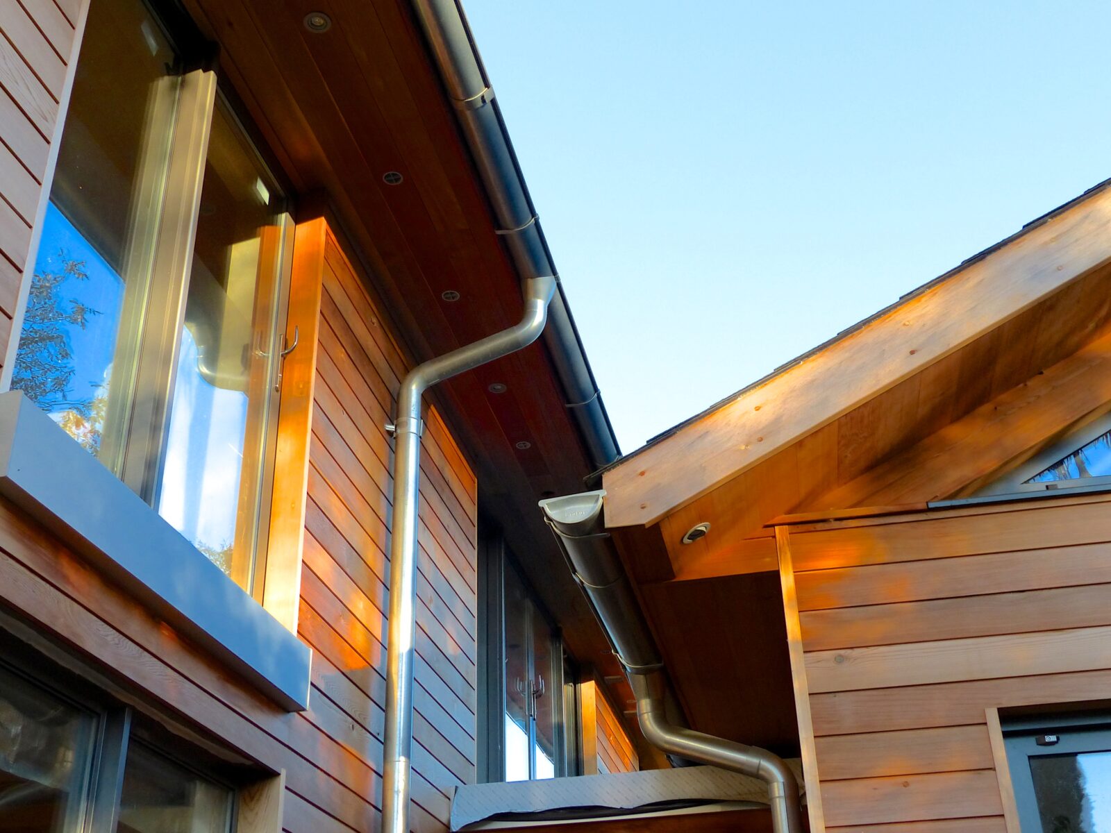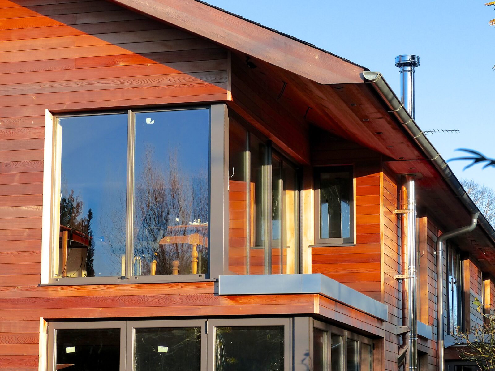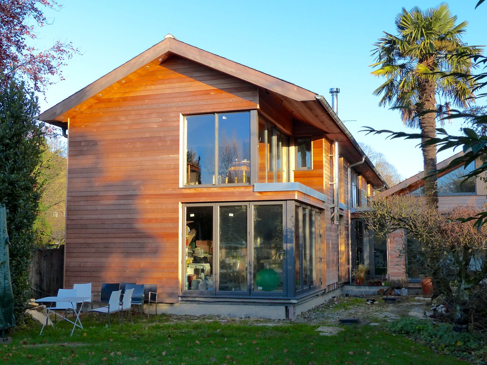 The design was enthusiastically supported by East Hants District Council, their Conservation Architect and Planning Officers. Prefabricated Timber Framed sustainable low energy construction with 240mm insulation to external walling with Western Red Cedar Boarding cladding. Natural Slate roofing, renewable energy systems using an Air Source Heat Pump serving wet underfloor heating to all floors, centralised vacuum cleaning ports, mechanical heat recovery system as well as a laundry chute!