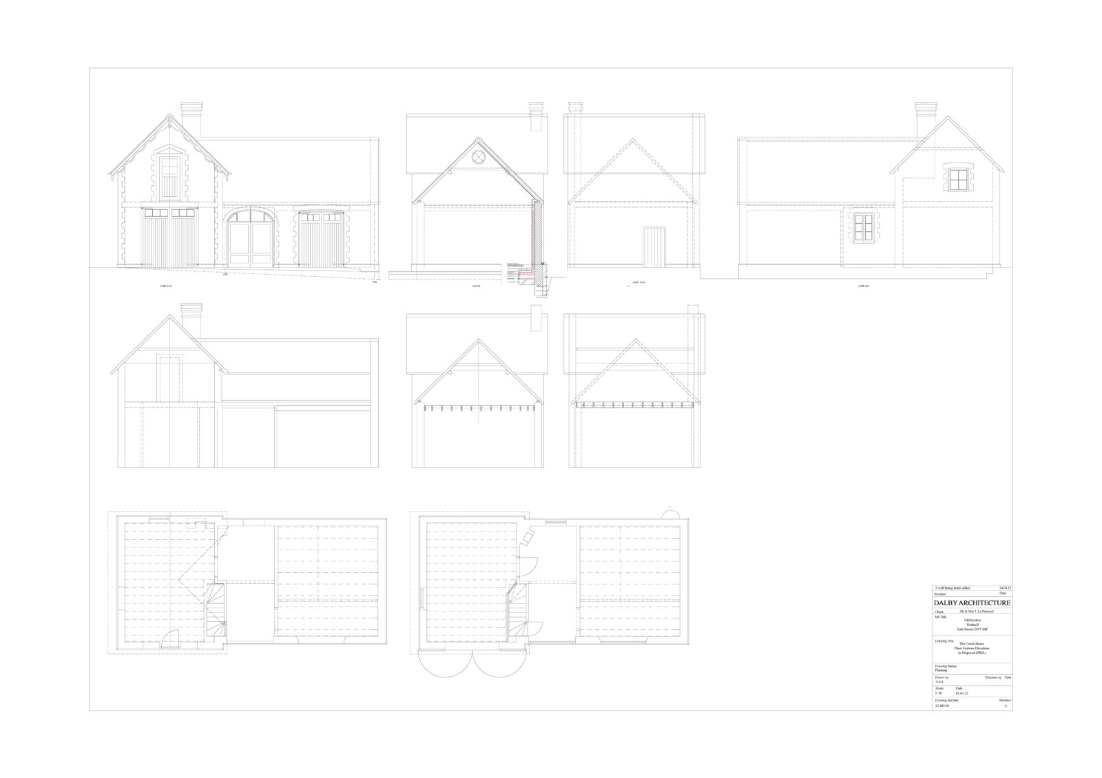 Set within the curtilage of the main Grade II* Listed house, the Coach House has good fenestration and in need of total restoration. We have designed new plans for ground and first floors, incorporating a glass bridge between the first floor accommodation with additional dormers and windows as required.