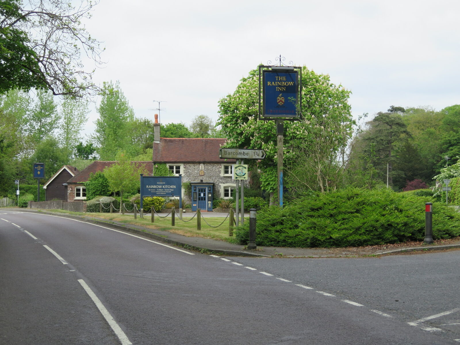 The Rainbow Inn (Listed Grade II) is an 18th Century Coaching Inn sited at an old road crossing point at Resting Oak Hill Cooksbridge Lewes. It once formed part of a small farmstead which refreshed the needs of passing travellers on horseback or with horse drawn vehicles. The adjacent Forge & Blacksmith’s buildings would deal with the normal service items of vehicles while The Rainbow Inn supplied ales and drinks to tired drivers and their passengers. Historically the Rainbow Tavern during 1947 (ref E Reeves) was in High Street Lewes, renamed Lincolns Inn now The Rights of Man.